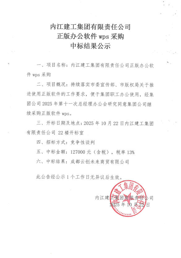 内江建工集团有限责任公司正版办公软件 wps 采购