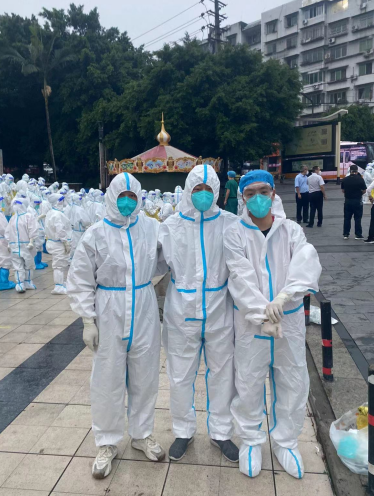 这一夜,在志愿者们的共同努力下,曾斌也顺利完成了给辖区内的居民上门做核酸的任务,当刚回到休息地,又接到紧急任务,在场却无一人推脱,曾斌又义无反顾地套上了防护服,拖着疲惫的身体到达了现场,“我只想把自己力所能及的事做好,哪里需要我们就到哪里去。”曾斌说。