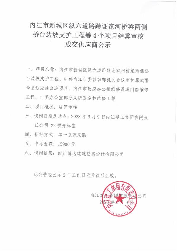 三、谈判日期及地点:2023年6月9日内江建工集团有限责任公司 22楼开标室