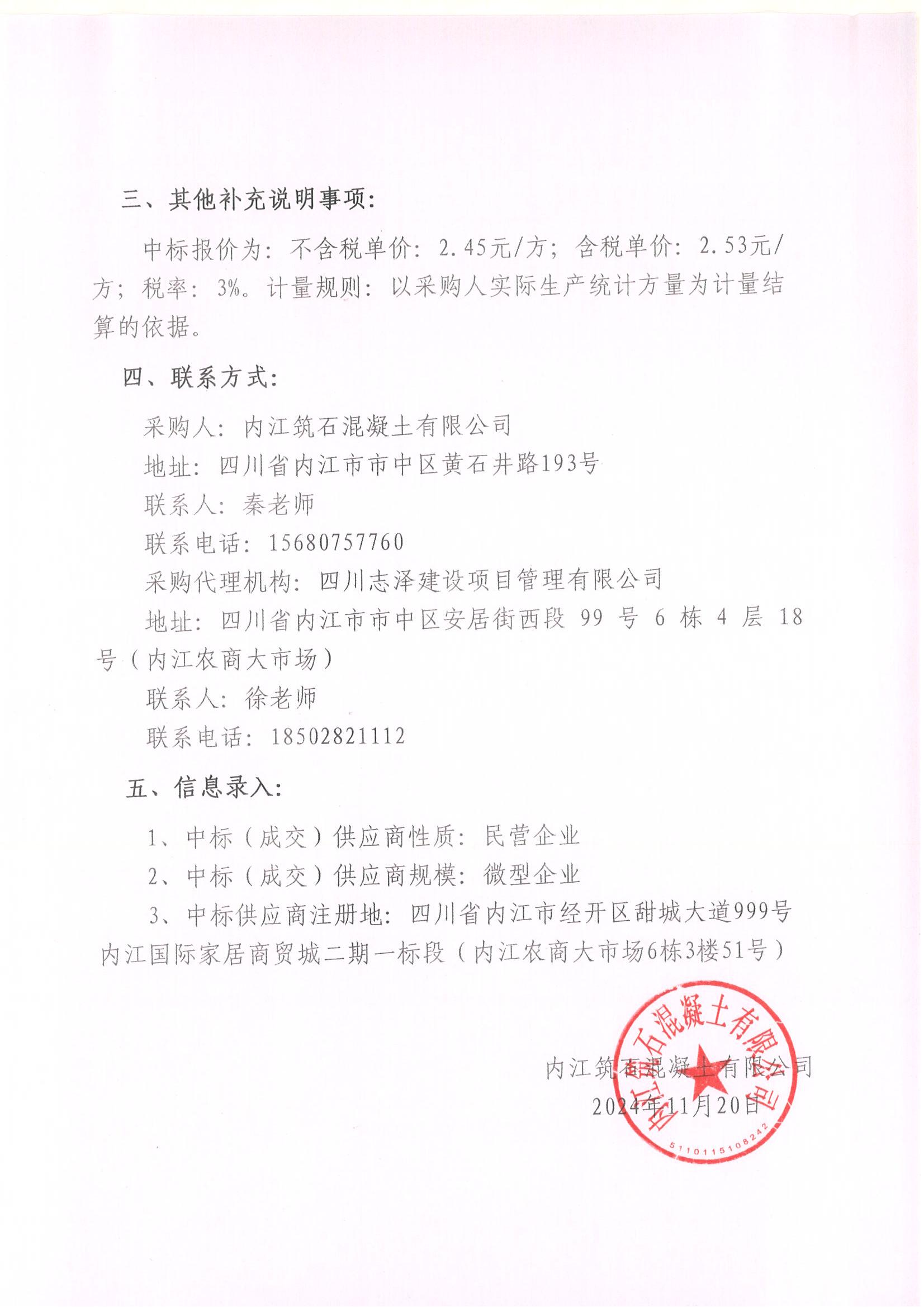 2025年内江筑石混凝土有限公司直购电服务成交供应商公示